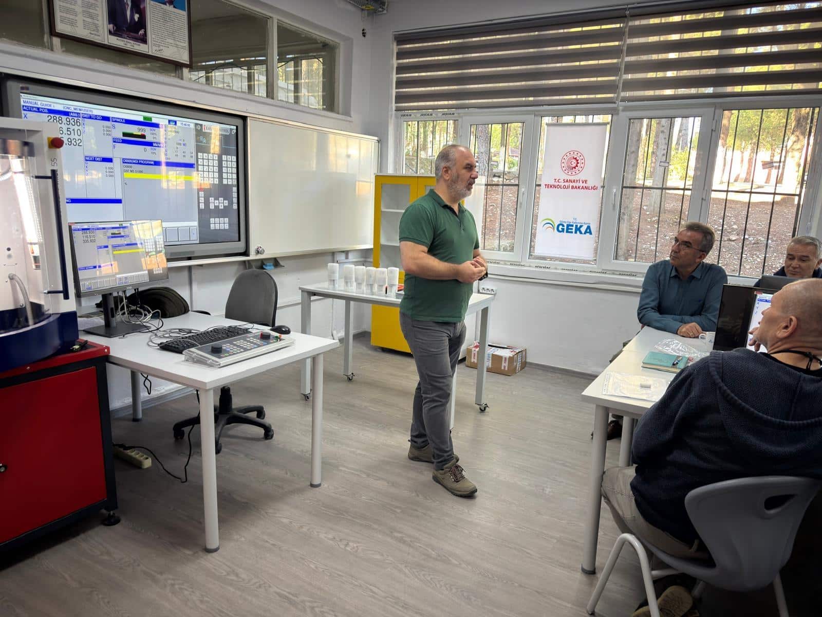"Mesleki Eğitimde Yenilikçi Fırsatlarla Nitelikli İstihdam" SOGEP projemiz kapsamında Pamukkale Atatürk Mesleki ve Teknik Anadolu Lisesi'nde kurulumları tamamlanan CNC Simülasyon ve Pnömatik Eğitimi atölyelerinde görev alacak alan/dal öğretmenlerimize yönelik CNC Programlama ile Pnömatik/Elektropnömatik Eğitimleri tamamlandı.
